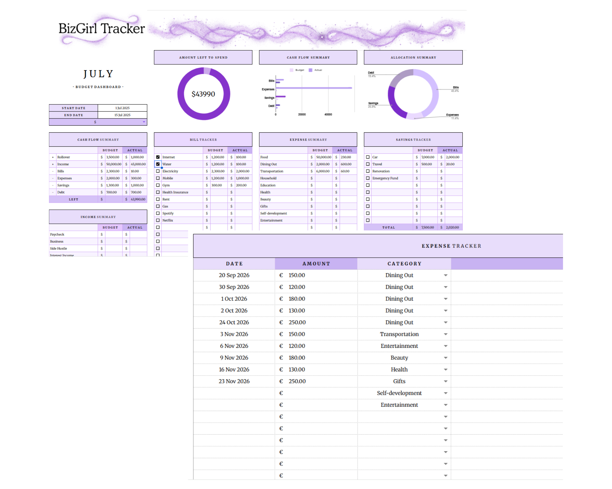 BizGirl Tracker — Budget, Track & Save (Digital Download)